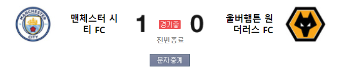 안녕하세요! 지금 울버햄튼과 맨시티의 경기가 진행되고 있는데요.